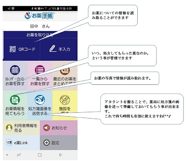 等を念頭に置いて決めたらいかがでしょう。 因みに、私は『e お薬手帳 』というものをインストールしました。