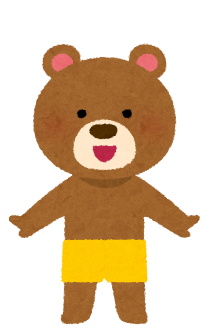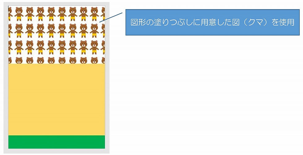 シャツだとすると①は前身ごろ、②は後ろ身ごろ、③は襟になります。 それぞれの図形を好みの色や図柄で塗りつぶします。 ここでは①の前身ごろに「かわいいフリー素材集 いらすとや」さんの「クマ」のイラストをダウンロードして使用しました。