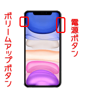 ホームボタンのない機種は、電源ボタンとボリュームアップボタンを同時に押します。