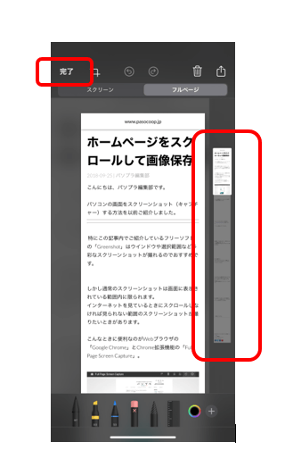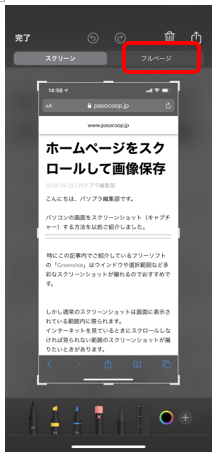 iPhoneでホームページを見ていて、長いページだと、何回にも分けてスクリーンショットをとらないといけなかったですよね。