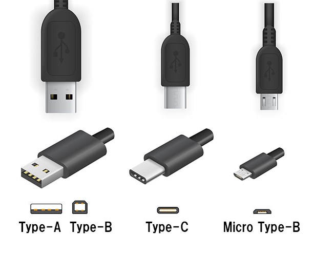 Mini-USB Type-B:デジタルカメラなどの接続に使われている、USBコネクターのミニバージョンです。ndroidスマートフォンで普及しましたがType-Cへの切替えがすすんでいます。