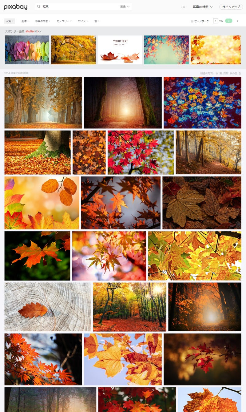 「紅葉」で検索すると次のようにたくさんの写真が表示されます。