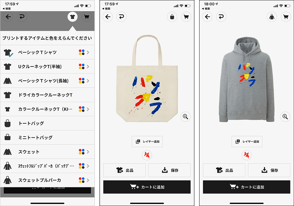 Tシャツの他にもトートバッグやスウェット、パーカなども選択できます。