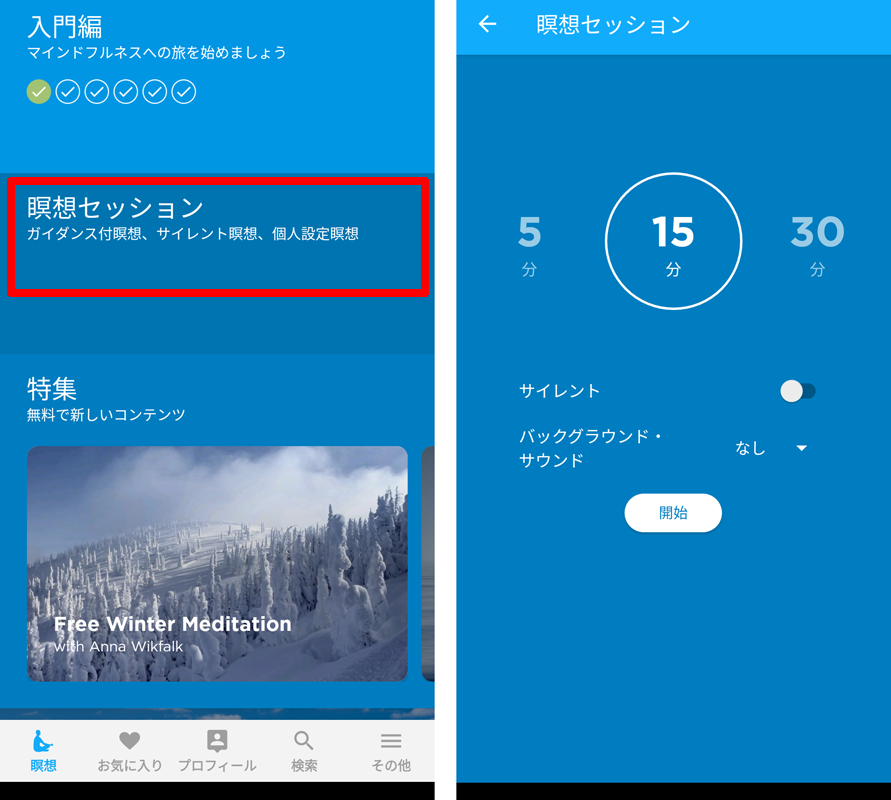 「瞑想」で検索するとたくさんのアプリがありますが、初めはやり方を解説してくれて慣れてきたら余計なガイダンスがオフにできるこのアプリが使いやすく感じました。