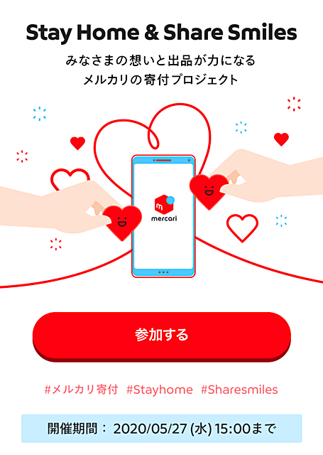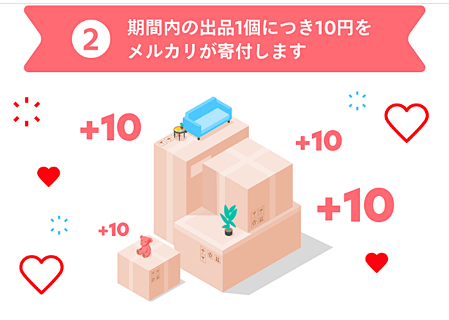 2. 期間内の出品1個につき10円をメルカリが寄付します。